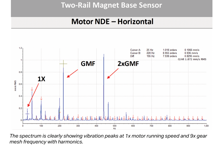 - Frecuencia de engrane (gear mesh) y armónicos