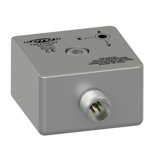 El sensor triaxial TREA331 ofrece medición simultánea en tres ejes con una configuración compacta de salida lateral.